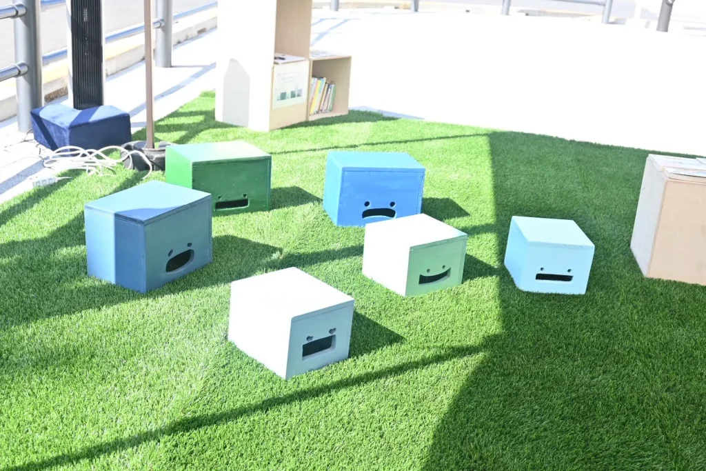 座ったり机として共に過ごす時間をつくり、持ち運びできることで交流の場を広げます。